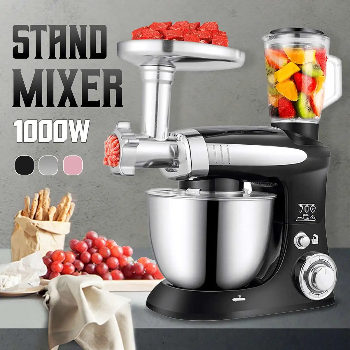 Stand Mixer 6 Speed Multifunctional Electric Food-Blender Mixer 1000W Meat Grinder Food Processor D